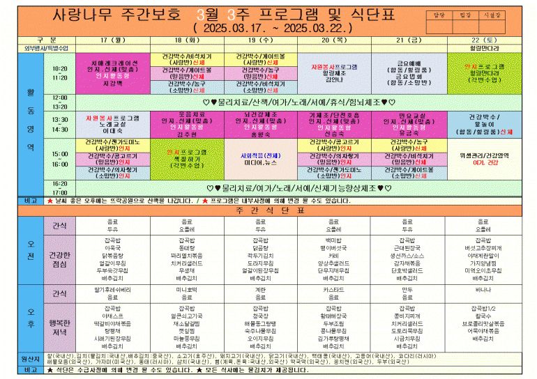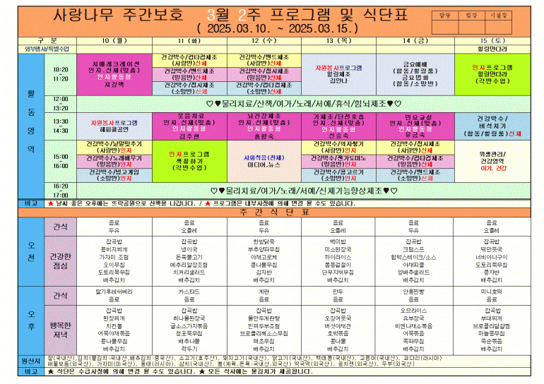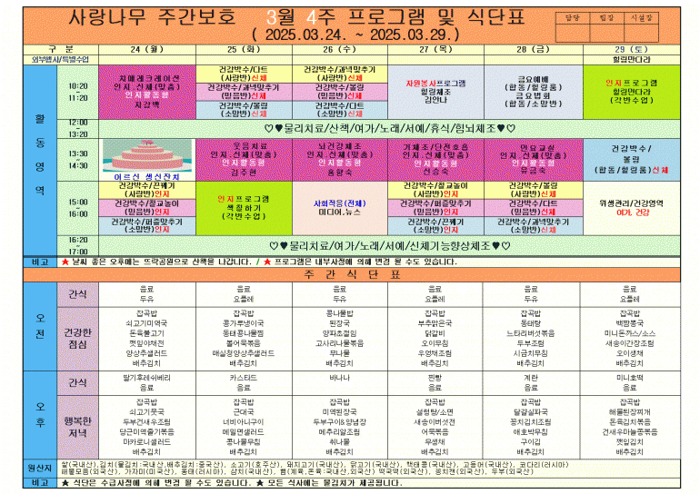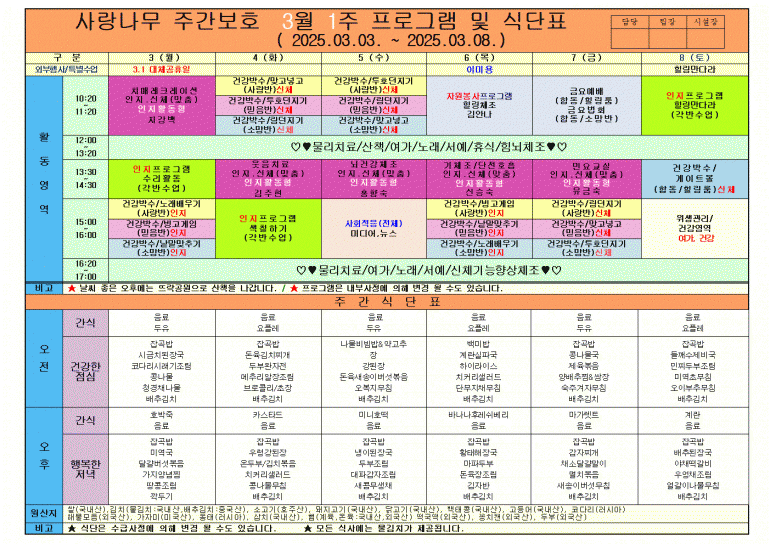 2025년 3월 식단 및 프로그램입니다