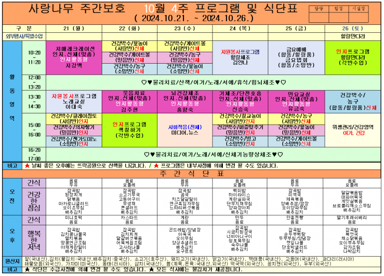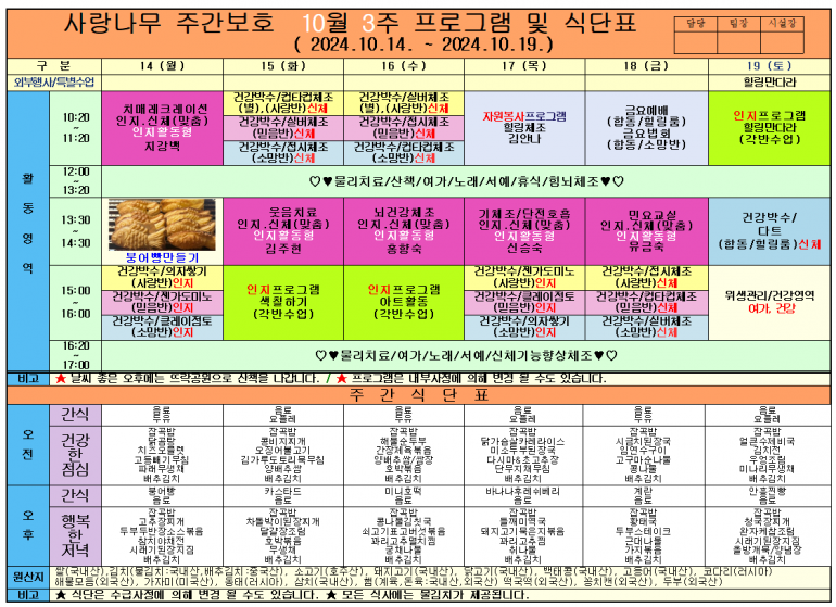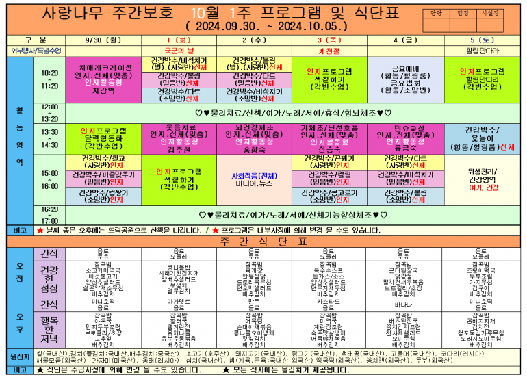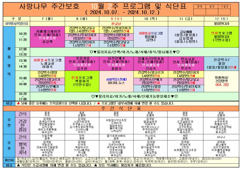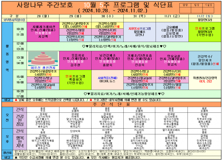 2024년 10월 식단 및 프로그램입니다