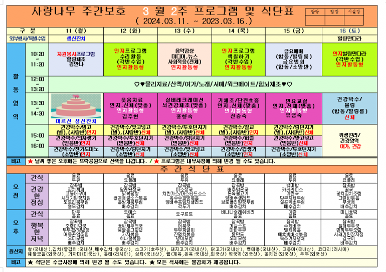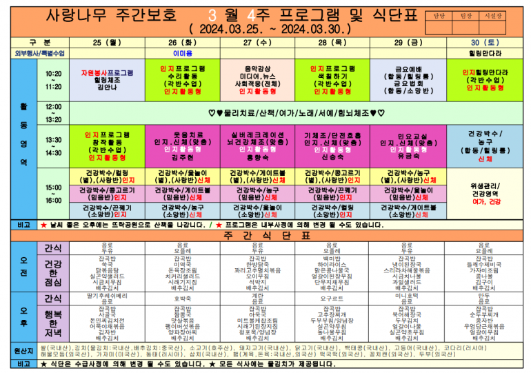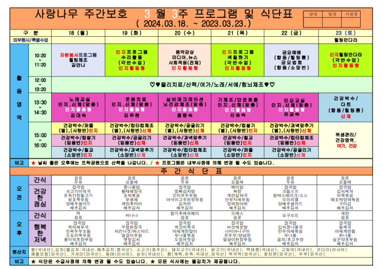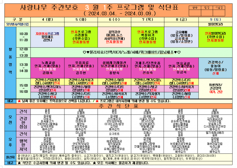 3월 식단및 프로그램입니다.