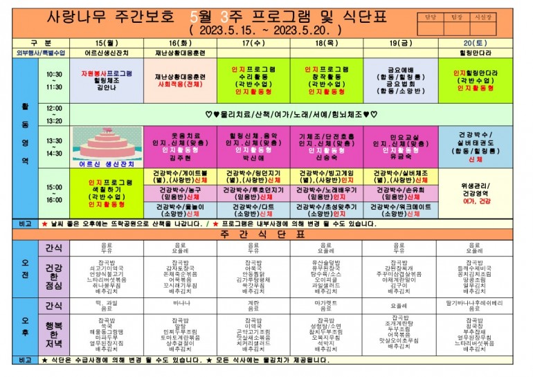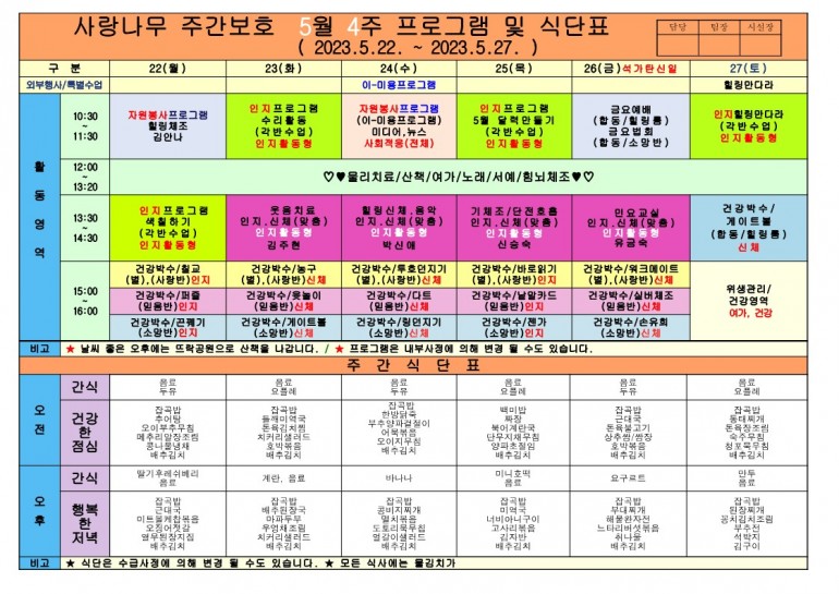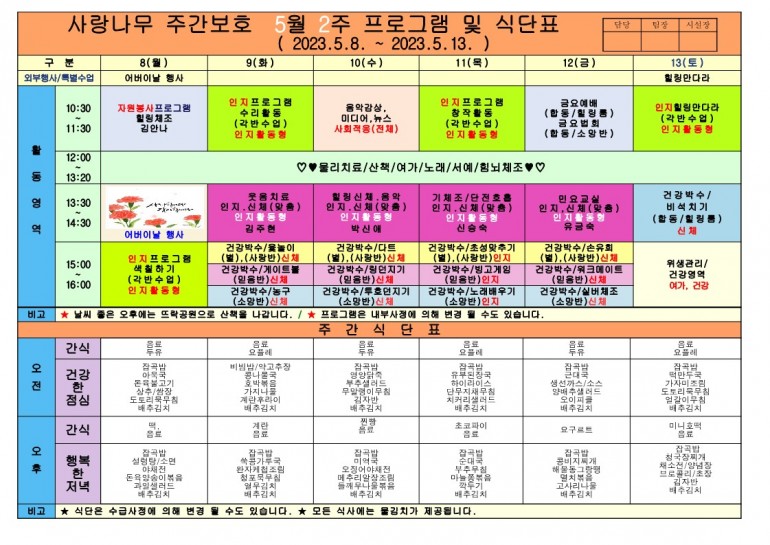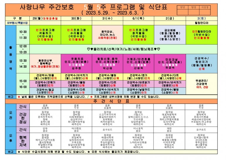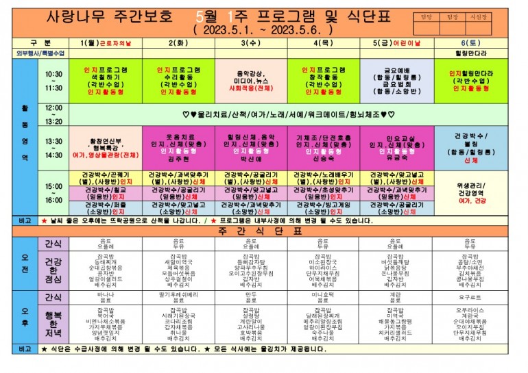 2023년 5월 식단 및 프로그램입니다.