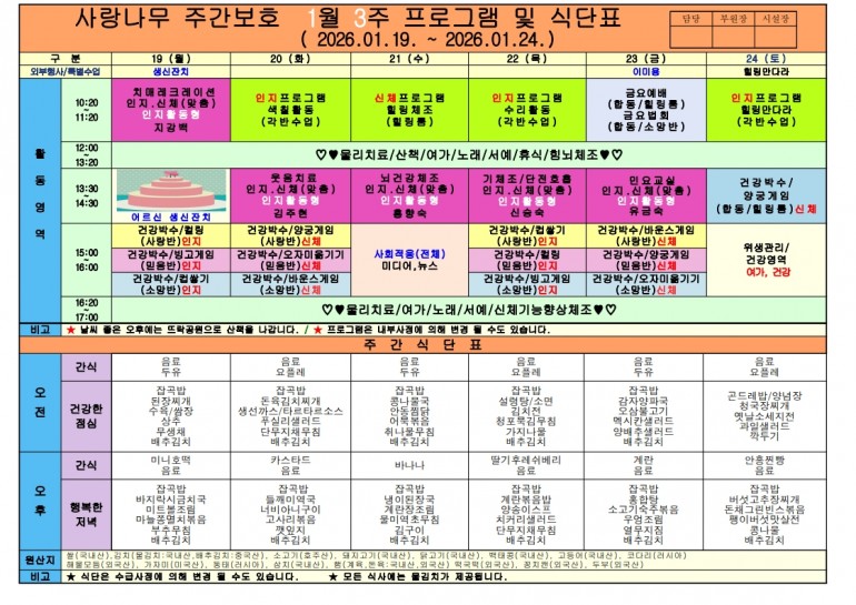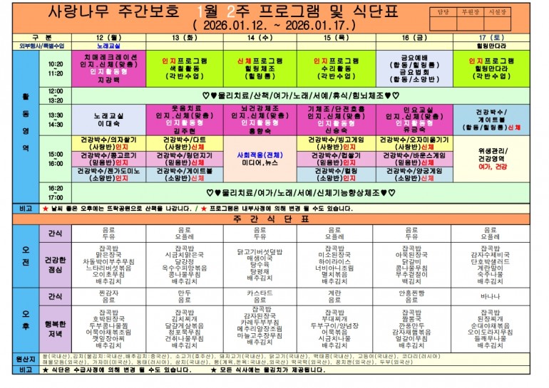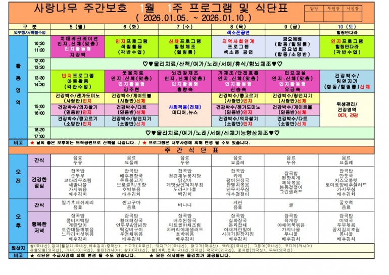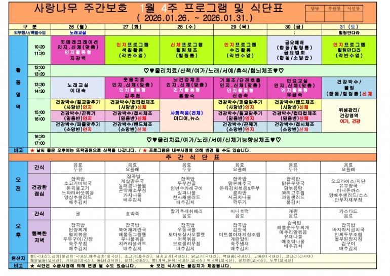 2026년 1월 식단및 프로그램입니다