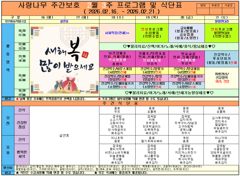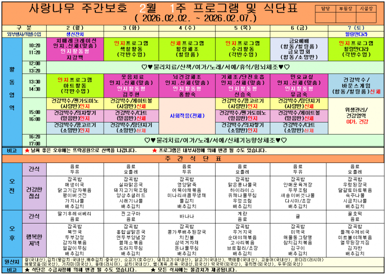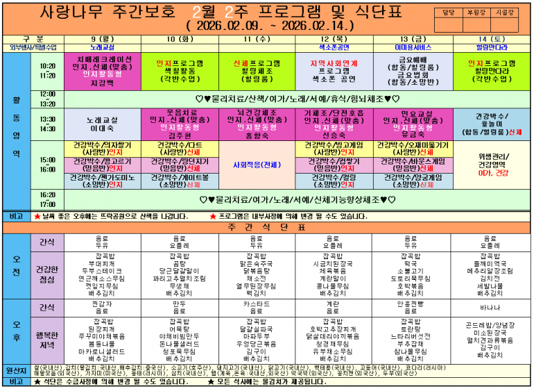 2026년 2월 식단및 프로그램입니다