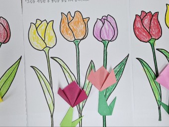 4월 22일 튤립종이접기 및 색칠하기, 과녁맞추기입니다